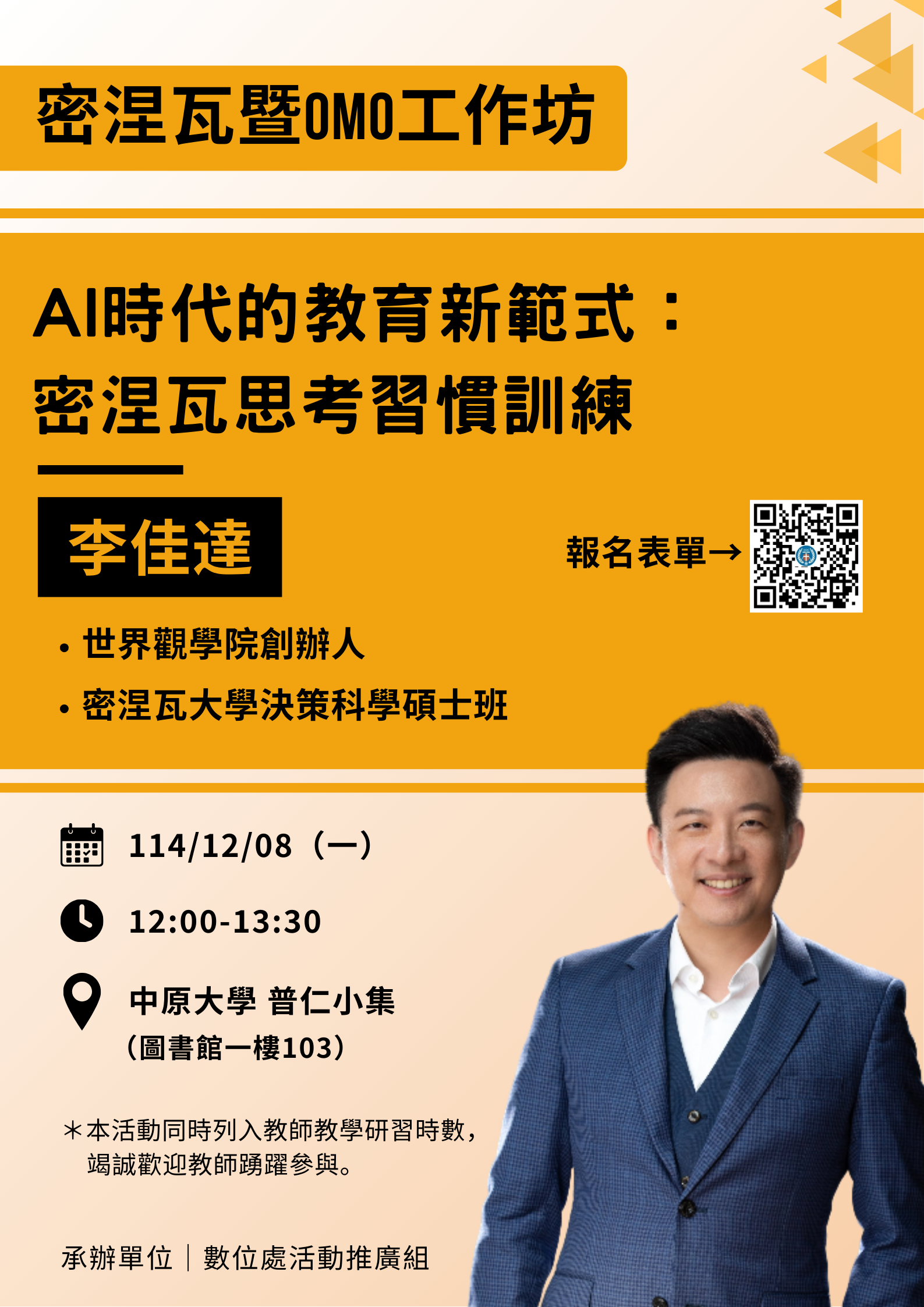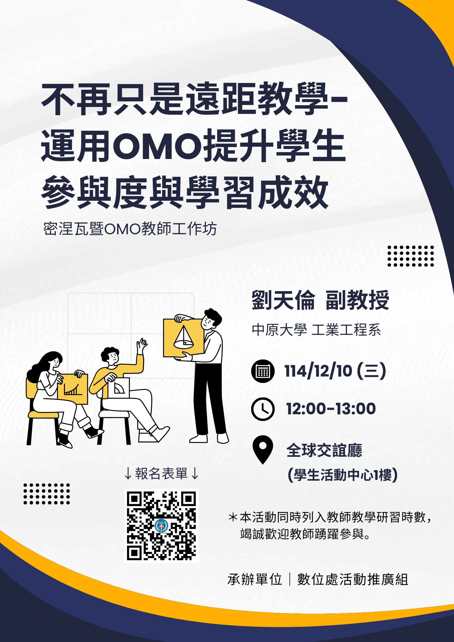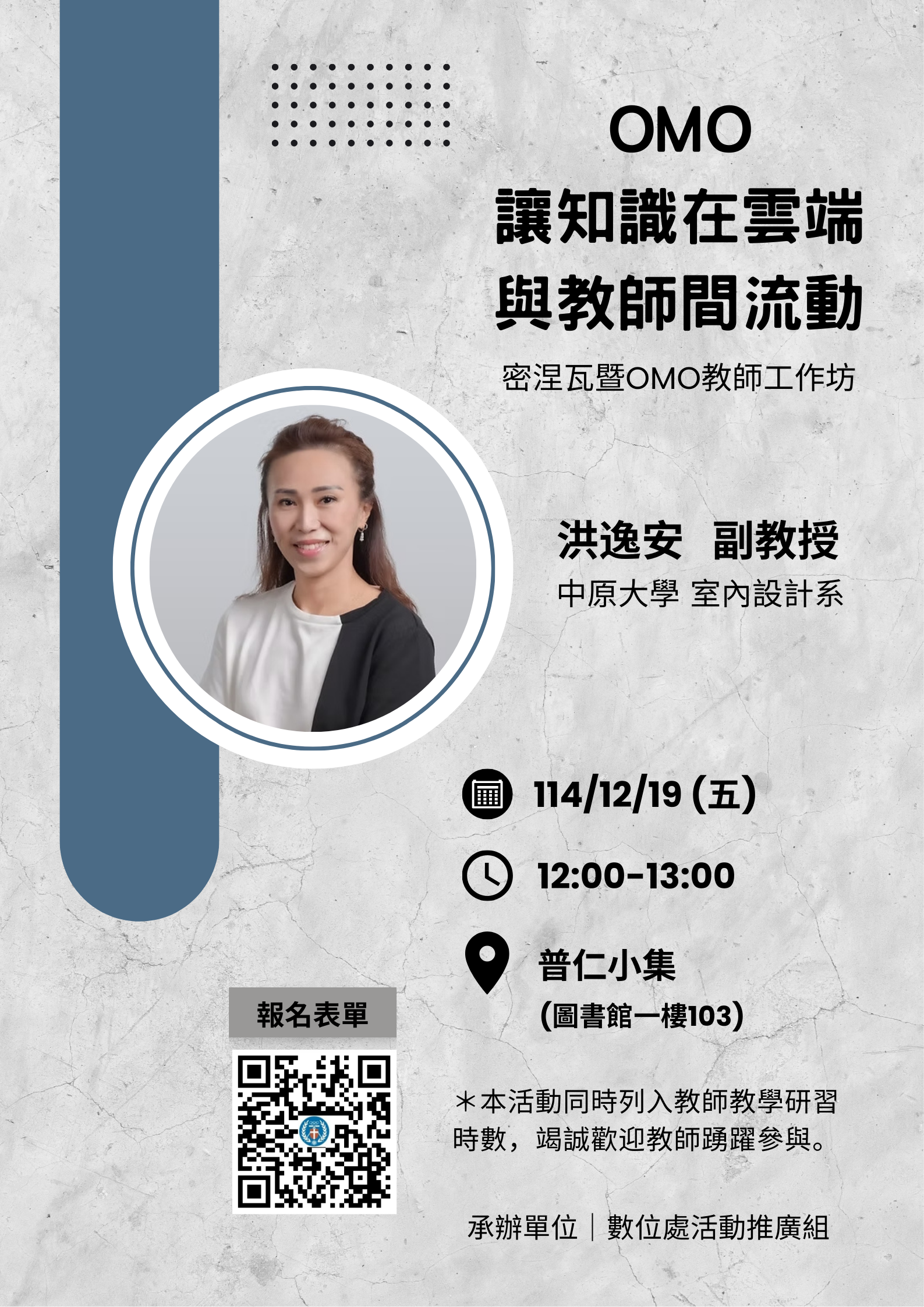 【數位處活動組三場教師工作坊】 2025-12-08 最新消息 You Might Also Like 【114-1】數位處ODE大使培訓&競賽 2025-12-01 2025數位學習體驗節-拍攝剪輯大賽 2023-09-07 「現代公民的量子素養」線上課程推廣活動-沒有三兩三,不敢上「量」山 2022-12-12